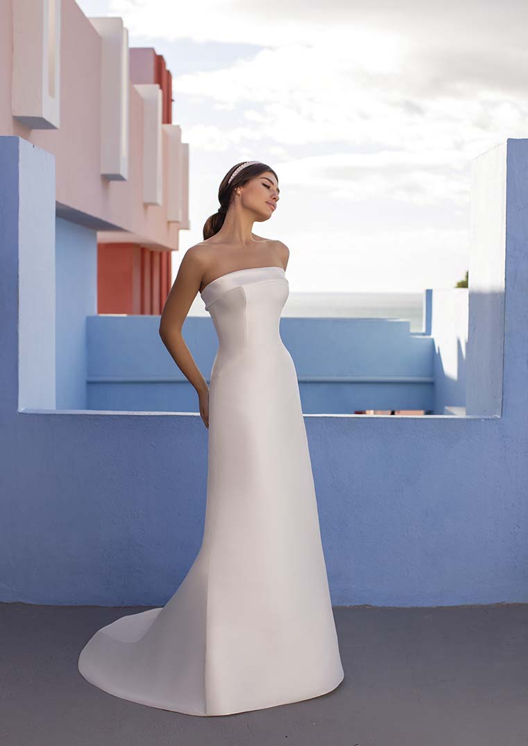 Ook zien we de iets klassiekere strakke bruidsjurk met een mooie kanten rug. De ontwerpers werken met materialen van een hoge kwaliteit en dat is te zien.