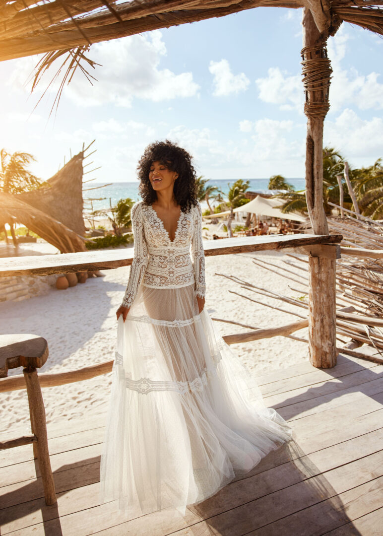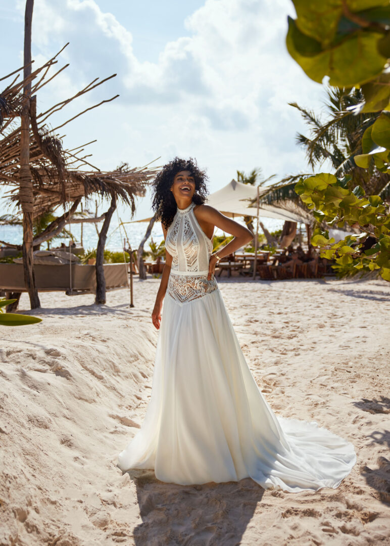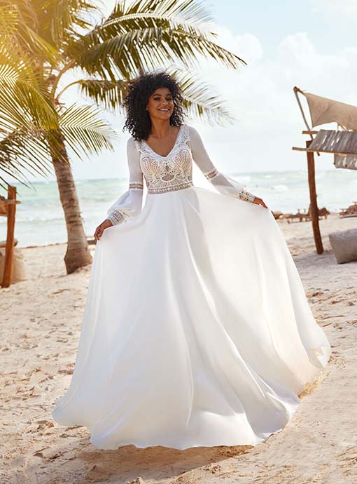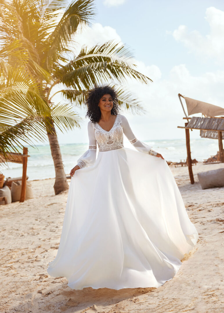 Op zoek naar de perfecte bruidsjurk? Dan hebben wij een goede suggestie. Het merk is nog niet heel bekend bij het grote publiek, maar een absolute aanrader. De bruidsjurken van Hervé Paris zijn stuk voor stuk adembenemend mooi en hebben een romantische bohemian uitstraling met de franse flair. Het merk maakt gebruik van luxe stoffen zoals kant, zijde en tule, en creëert daarmee elegante en tijdloze ontwerpen. De jurken zijn vaak voorzien van subtiele details, zoals mooie borduursels, bijzondere kantapplicaties en verfijnde halslijnen. Niet voor niets dat wij het merk aan onze collectie hebben toegevoegd.
