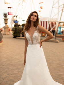 Een trouwjurk kan op verschillende manier heel sexy zijn. Zo is er de trouwjurk met een diep decolleté. Jouw vrouwelijke vormen worden hierdoor benadrukt. Het is fantastisch te combineren met een mooi sierraad.