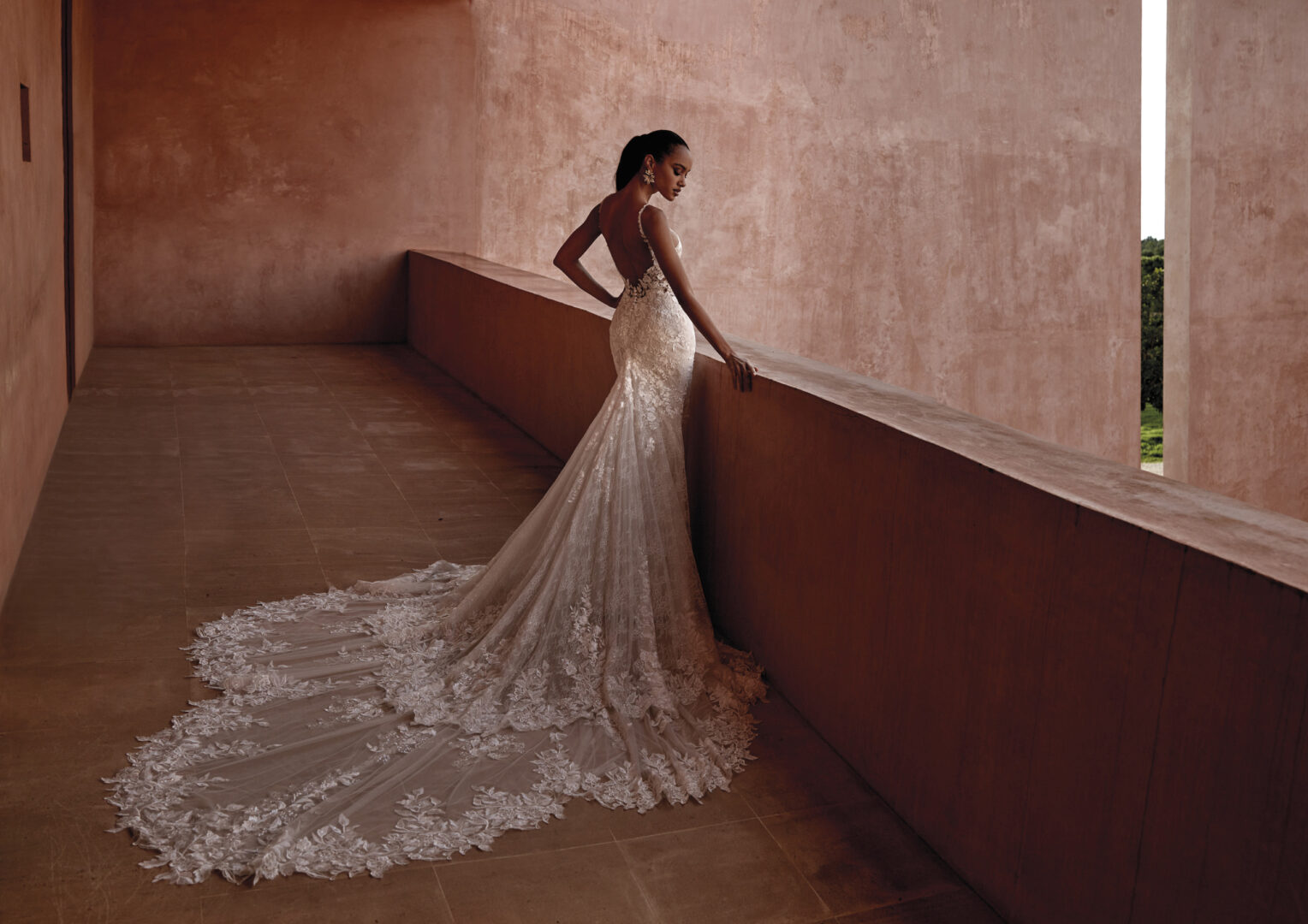 Seychelles is dé mermaid stijl trouwjurk voor de bruid die houdt van contrast: strak én zacht, romantisch maar van ook een tikje gewaagd. De fijne spaghettibandjes geven een subtiele touch, terwijl het kanten lijfje met transparante details een sexy look geeft. De jurk heeft een royale sleep van kant.