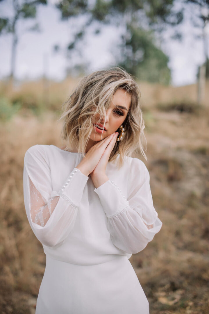 Wil je geen trouwjurk met lange mouwen maar wel dat effect. Ga dan voor een vestje of een losse top als een laagje. Die kun je namelijk 's avond uitdoen en dan heb je een hele nieuwe look.